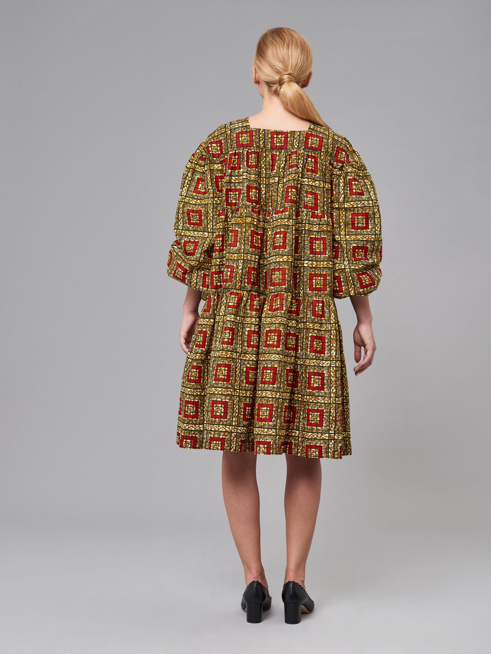• BLOUSE Round Neck Puff Sh Sleeves Hidden Buttons